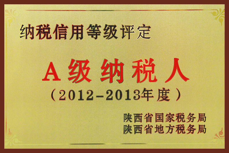 2012-2013年度納稅信用等級(jí)評(píng)定A級(jí)納稅人