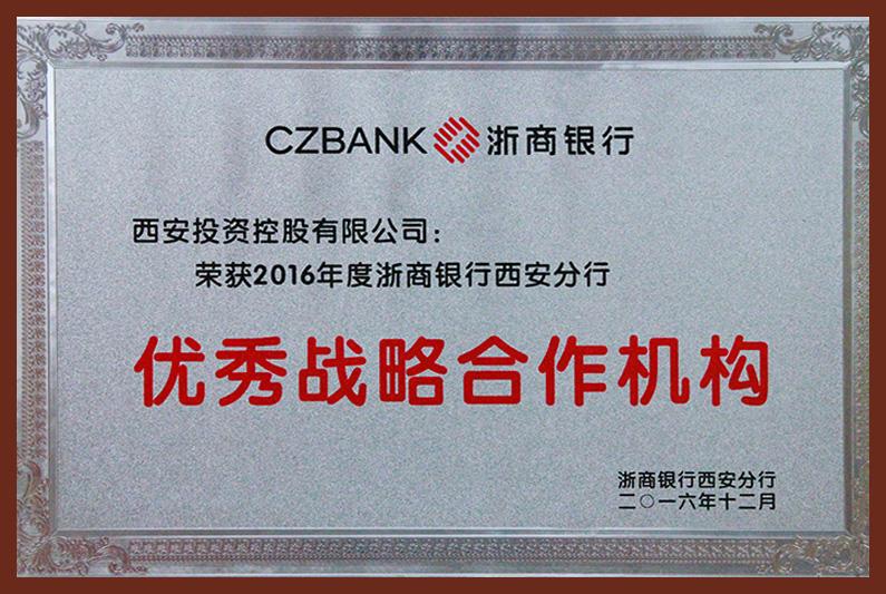 2016年度浙商銀行西安分行優(yōu)秀戰(zhàn)略合作機構