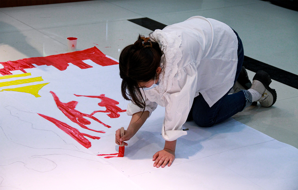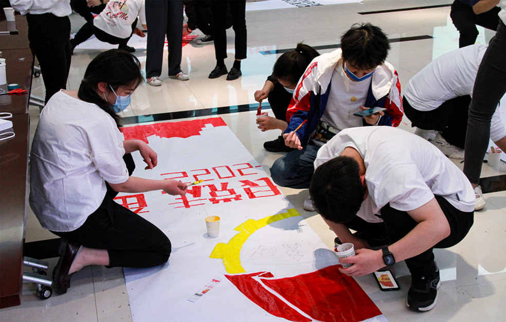在主題團(tuán)建活動(dòng)環(huán)節(jié),團(tuán)員青年們紛紛拿起畫筆、調(diào)制顏料、發(fā)揮想象,共同通過繪就《共繪百年光輝》巨畫,抒發(fā)對(duì)黨對(duì)團(tuán)的熱愛,把對(duì)青春的熱情化作斑斕的色彩,為建團(tuán)100周年獻(xiàn)禮。